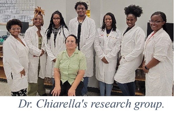 - Deja Toole, Gina M. Chiarella, Jessy Ndongou “Synthesis and primary characterization of Histidine-Salicylaldehyde metal complexes using microwave assisted technique” 2024 Southwest Regional Meeting of the American Chemical Society Waco, Texas October 20-23, 2024. https://swrm.org/program#b7b21f06-4bf5-4813-ab98-522dceb6d051
