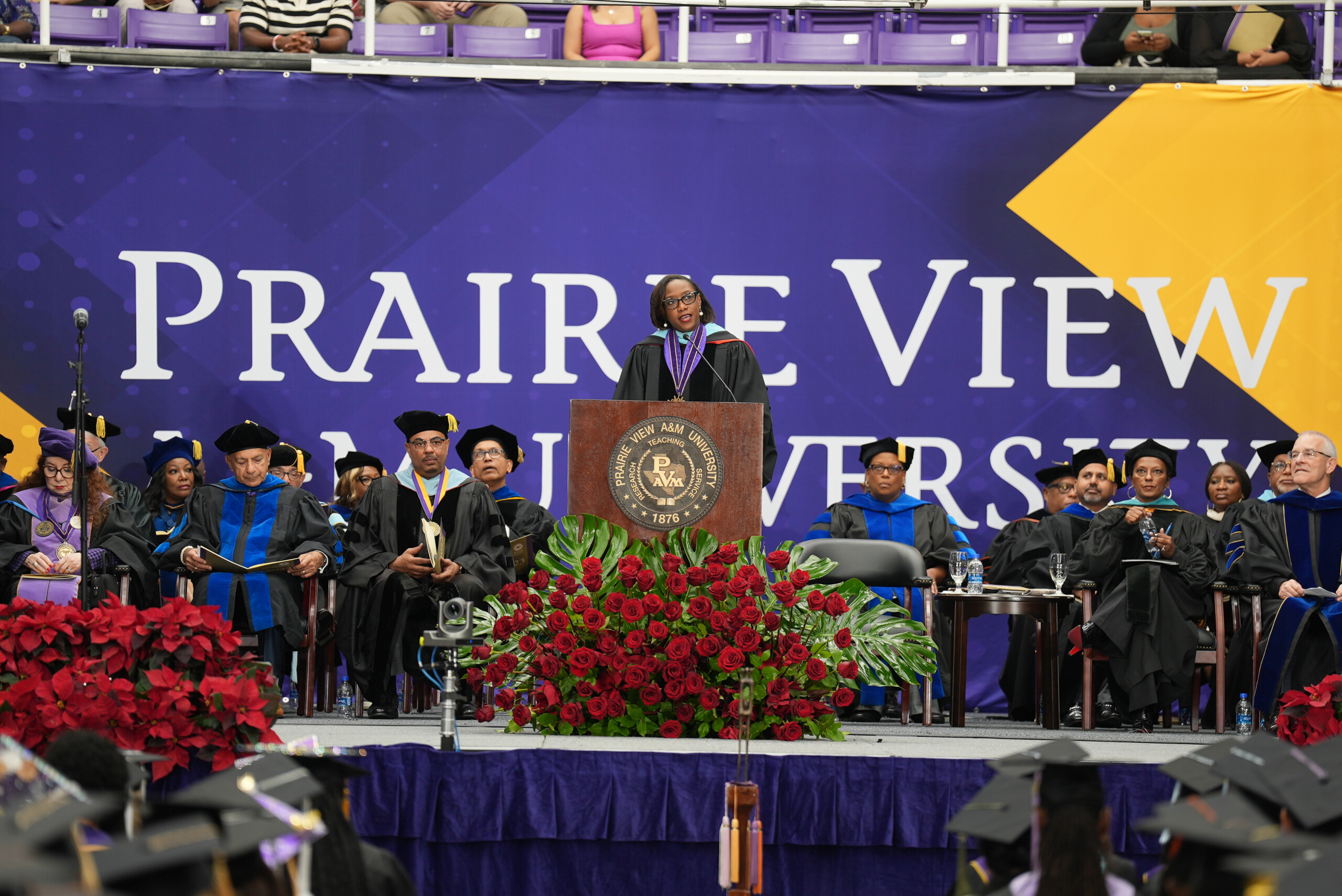 “As an HBCU alum, your degree is but one of many credentials you carry with you,” Trent told the graduating class. Prairie View has equipped them “mightily” the past four years on “a social and intellectual journey” that allows them to “unapologetically” be themselves.