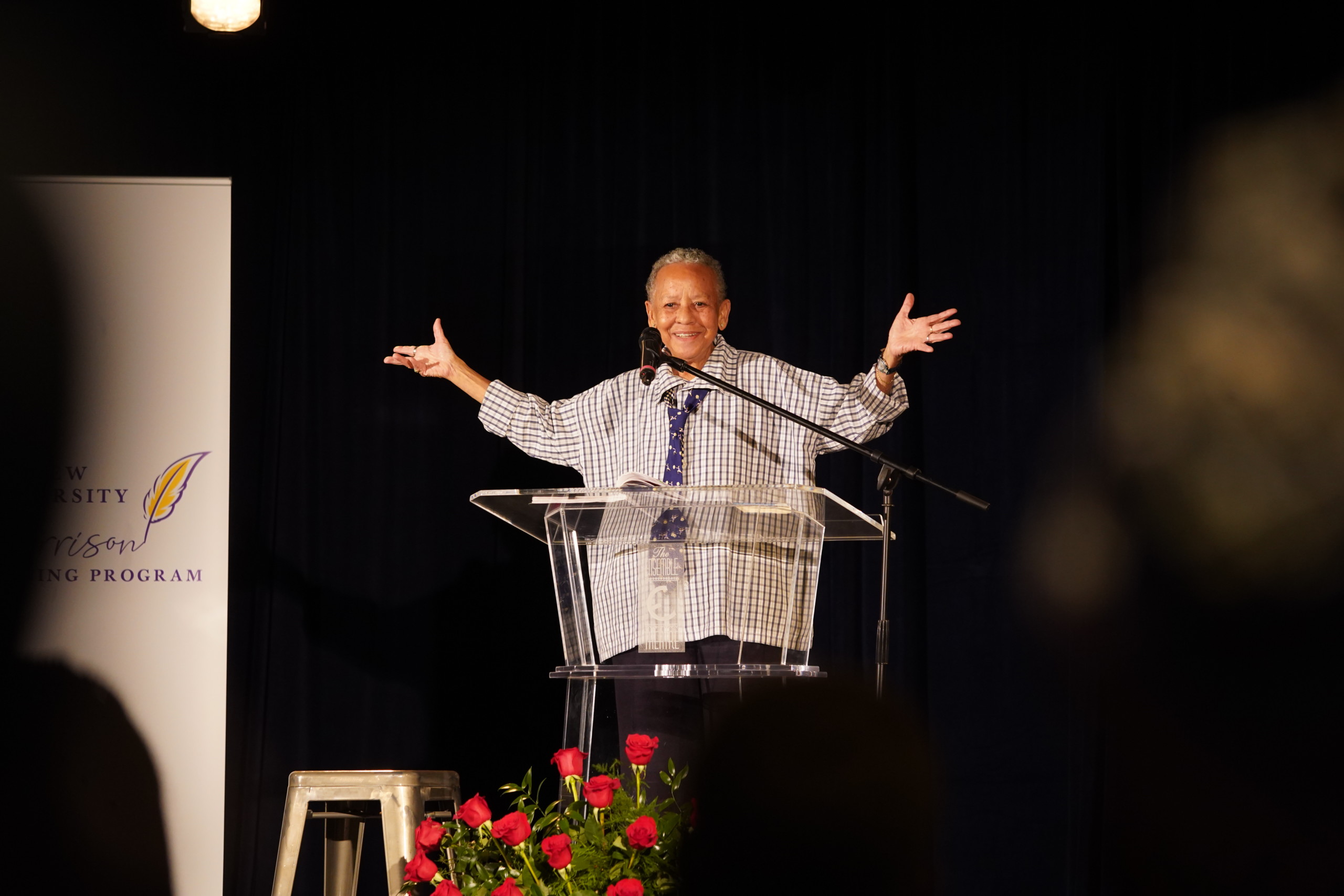 HOUSTON – Houston’s Ensemble Theatre was filled on Tuesday night with Prairie View A&M University students, faculty, staff and community supporters who came to witness a reading by the world-famous poet, writer, activist, educator and American icon Nikki Giovanni. It was the first in-person event featuring Giovanni, PVAMU’s inaugural writer-in-residence, under the university’s Toni Morrison Writing Program.