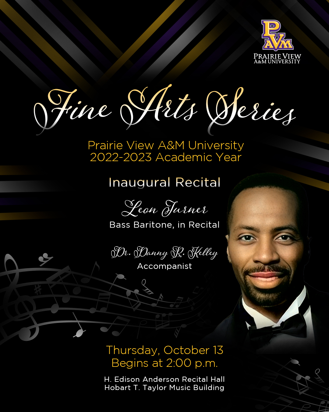 PRAIRIE VIEW, Texas (Oct. 10, 2022) – Prairie View A&M University launches its Fine Arts Series on Thursday, Oct. 13, with Leon Turner, bass-baritone, in recital. Turner has performed in master classes conducted by noted singers such as Leontyne Price and Blanche Thebom.