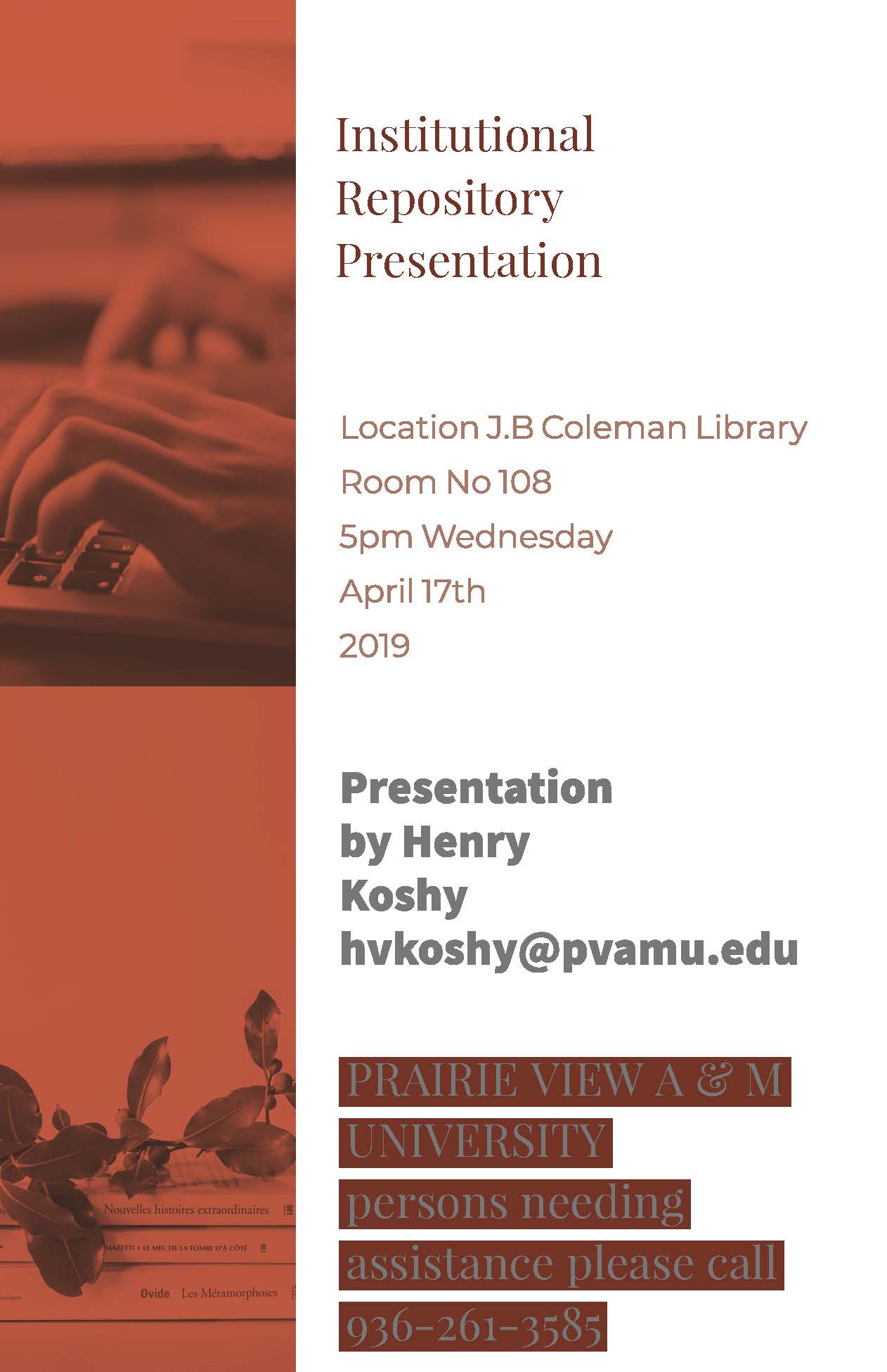 Institutional Repository Flyer Library Staff2019-04-02T11:46:03-05:00 Share This Story, Choose Your Platform! FacebookTwitterRedditLinkedInTumblrPinterestVkEmail