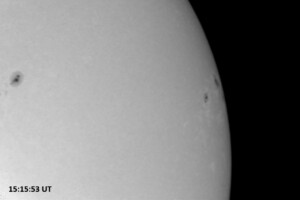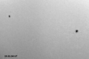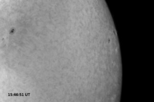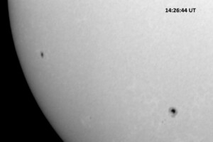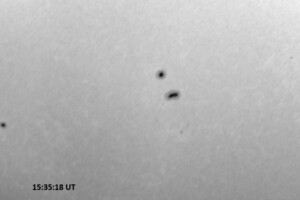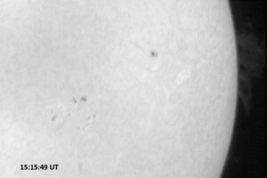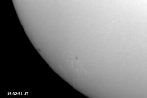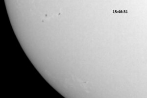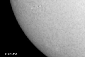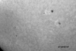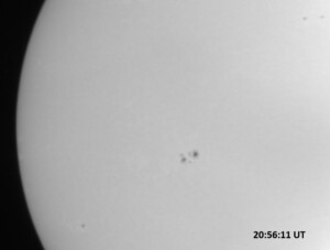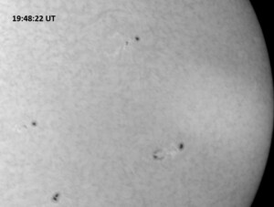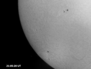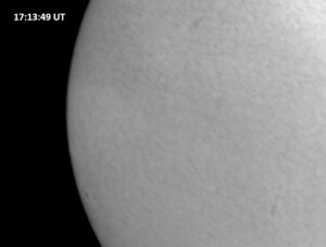 Weather was cloudy today but the clouds thinned enough to allow the Sun to shine through fairly strongly. This was enough for a complete set of continuum images, although they were made through cirrostratus clouds of varying thickness. H-alpha imaging was attempted, unsuccessfully, due to even the presence of thin clouds greatly reducing the contrast.