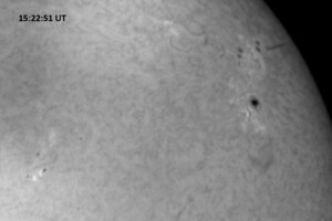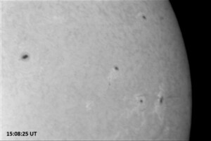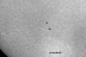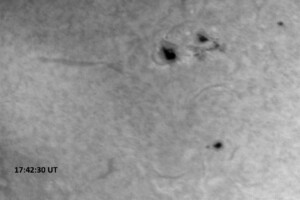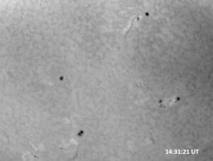 Although solar activity had been reported to be at low levels (prior to this afternoon’s M1.0 flare), this morning’s NOAA-SWPC discussion contains a lot of action. AR 14028 is growing and is one of the largest of the 13 visible spotted active regions on the Sun. It produced a C6.5/SF at 22:32 UT, 16 March, and a C7.8/1F flare at 5:42UT today. It produced a C2.7/SF at 14:30 UT today, then has been mostly quiet. ARs 14025 and 14031 continue to grow but were mostly quiet. ARs 14021 and 14034 also showed some slight growth but were otherwise quiet. Everything else was quiet and stable. A double peaked C-class event (C6.6 at 16:04 UT, and a C5.3 at 16:18 UT) was observed during today’s session. Later in the day, AR 14033 produced a C9 flare at 19:19 UT, which was immediately followed by a long-duration M1.0 event from the same active region, which peaked at 19:33 UT. These events were not observed at PVSO.