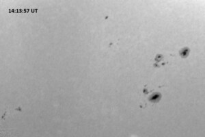 The weather was clear enough this morning only for a brief interval, allowing only red continuum images to be obtained. Contrary to the forecast from most sources for today, sunny skies did not return (overcast conditions did, just after these images were taken) and skies remained cloudy the rest of the day. Each of the below is a 0.25 second exposure and covers 13.8’x13.8′ on the sky, with celestial north up, west right.