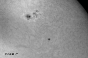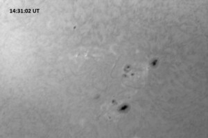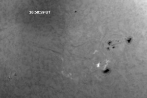 Each image covers 13.8’x18.0′ on the sky. The first is a red continuum image of 0.25 second exposure, the rest are H-alpha line center images, each 0.5 second exposure. Celestial north is up, west is right in each image.
