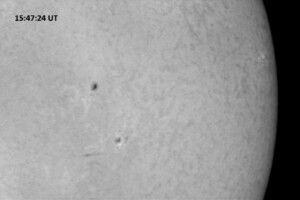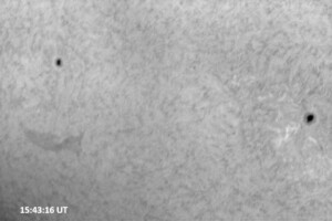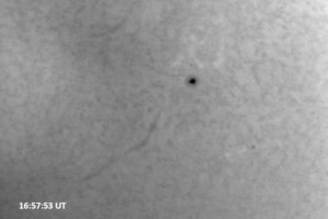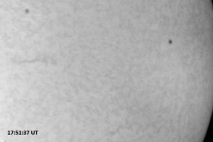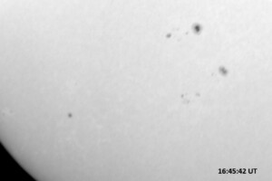 Solar activity persists at very low levels, with a single C1.7 flare today bringing it back up to “low” levels. This flare came from AR 14267 (while we were in the midst of the white light imaging session prior to H-alpha imaging) and peaked at 16:26 UT. The last C-class flare was yesterday at 10:15 UT, a C1.7. All of the 9 visible single spots and spot groups have simple magnetic configurations.