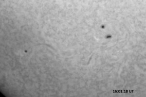 A typical observing run may last from one to four hours, depending on seeing considerations, weather, and other work responsibilities, but will include active region monitoring of available active regions and the collection of frames for high-resolution solar mosaics in H-alpha. Each session includes at least one mosaic, which is a series of images made of all parts of the Sun’s disk that can later be stitched together to form a whole-disk image. At the very least, this ensures that all visible features such as prominences, filaments, and active regions (sunspot groups) are all captured in image form at least once per session. Usually observations are carried out in the late morning hours, but an additional session may occur in the mid-afternoon hours and it will include its own mosaic. If a sunspot group is expected to be active, then it becomes a main focus for observation for extended periods of time.