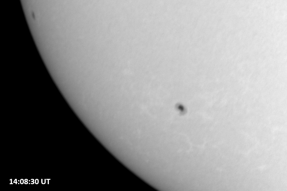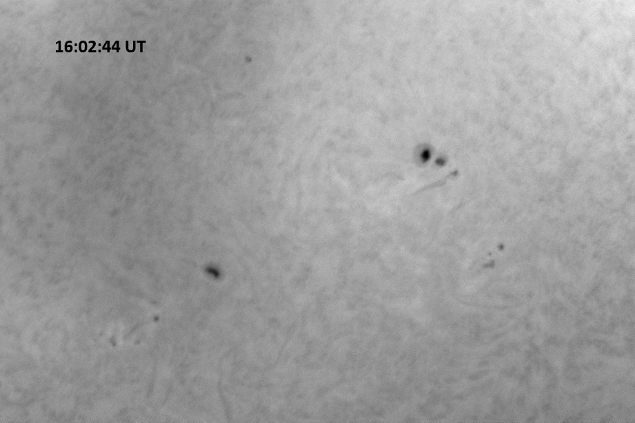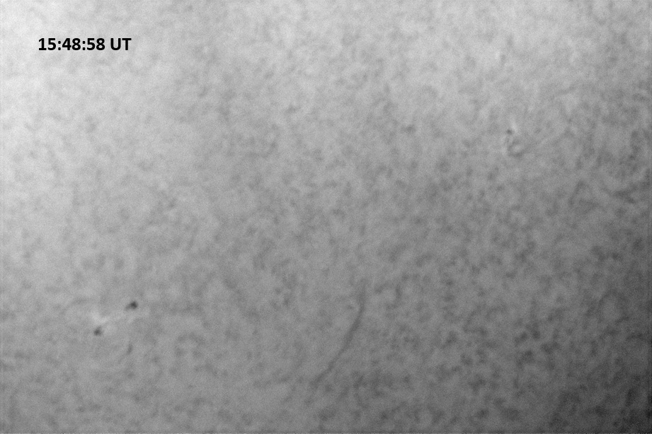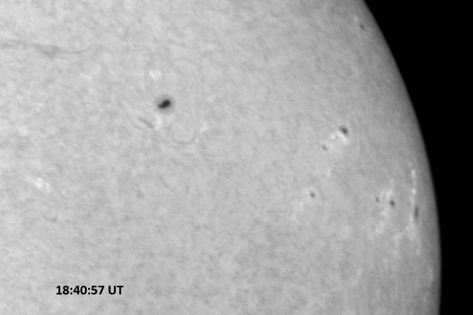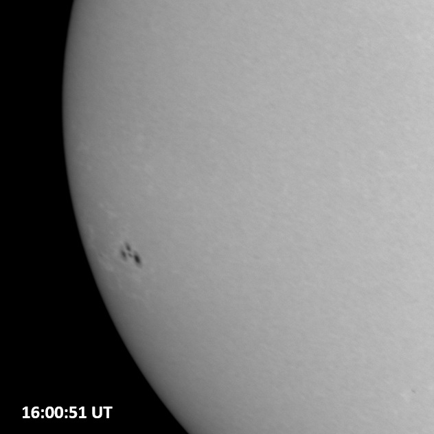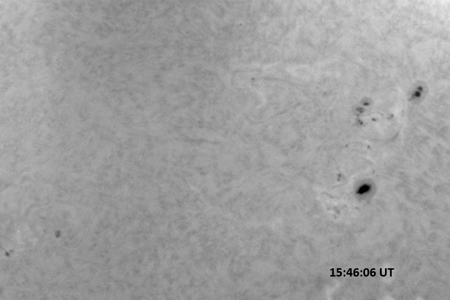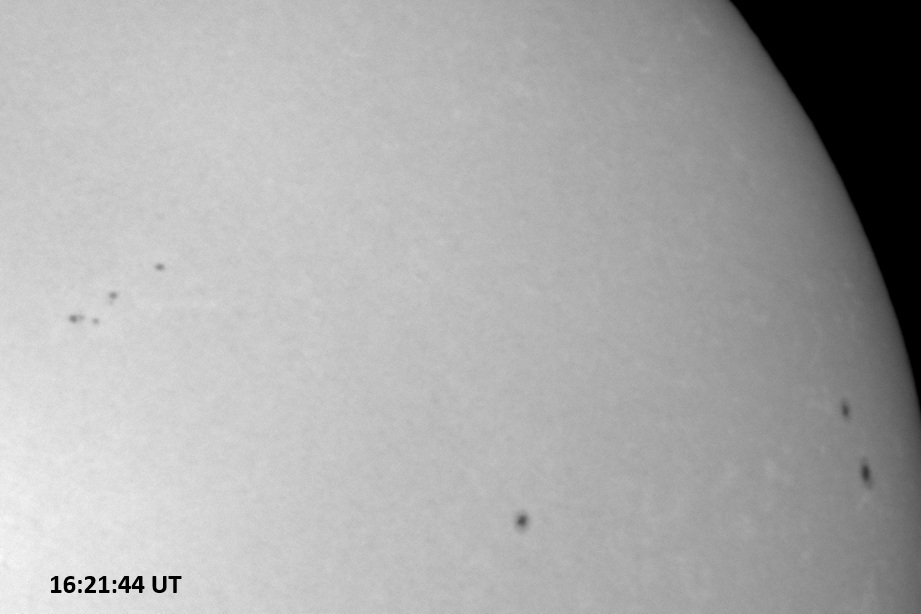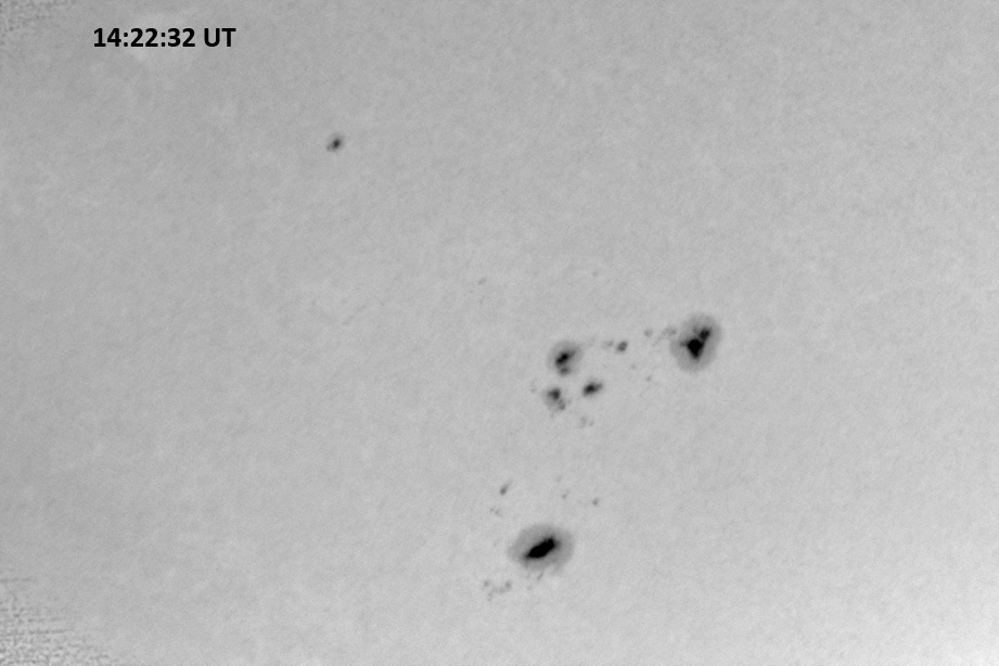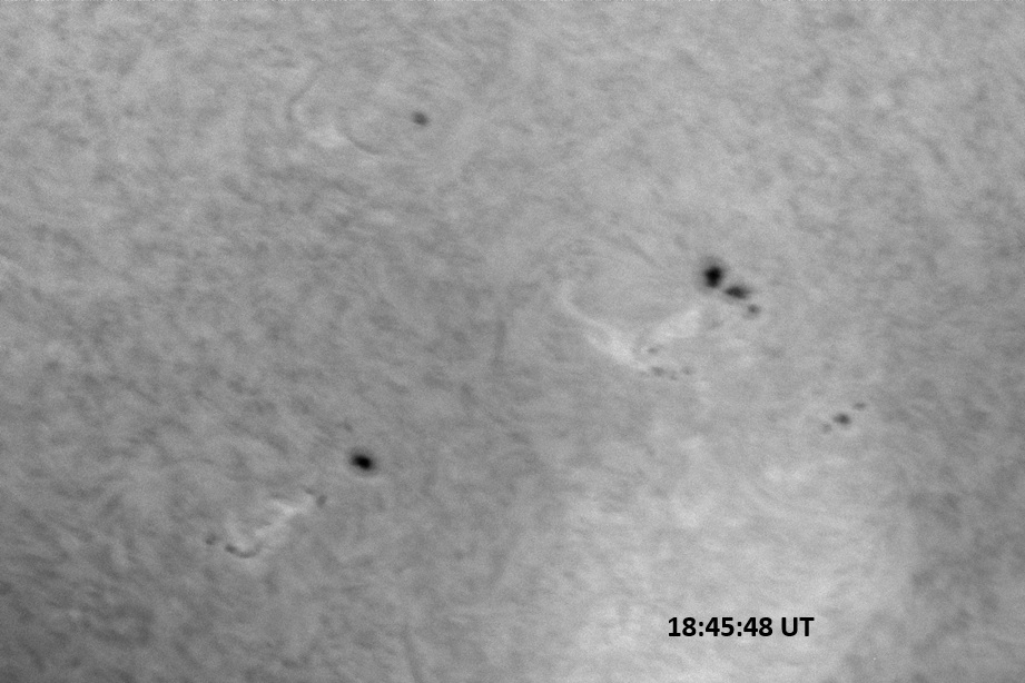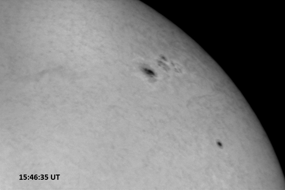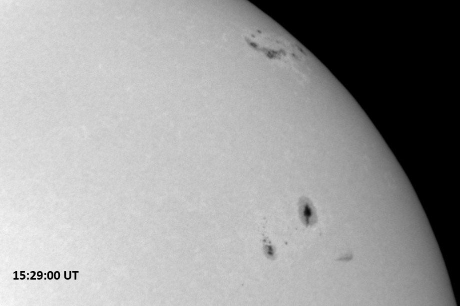 Weather was cloudy today but the clouds thinned enough to allow the Sun to shine through fairly strongly. This was enough for a complete set of continuum images, although they were made through cirrostratus clouds of varying thickness. H-alpha imaging was attempted, unsuccessfully, due to even the presence of thin clouds greatly reducing the contrast.