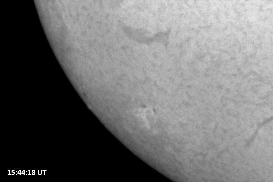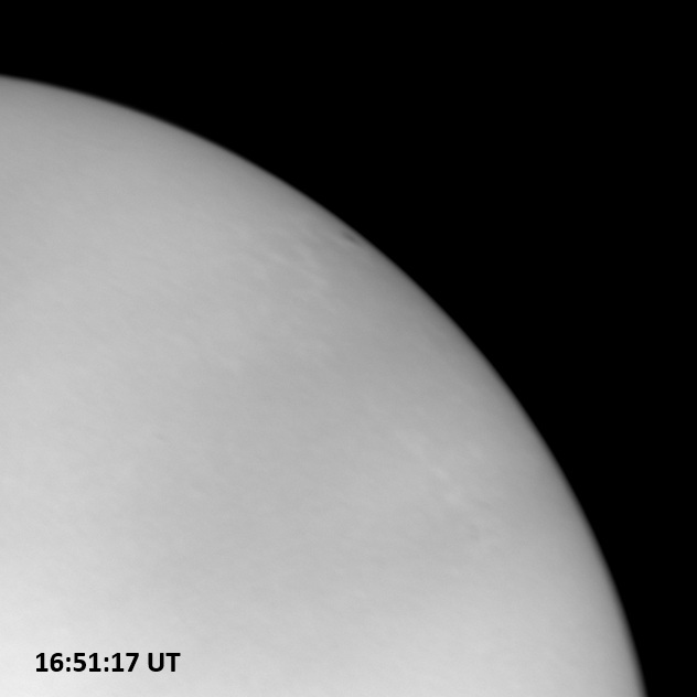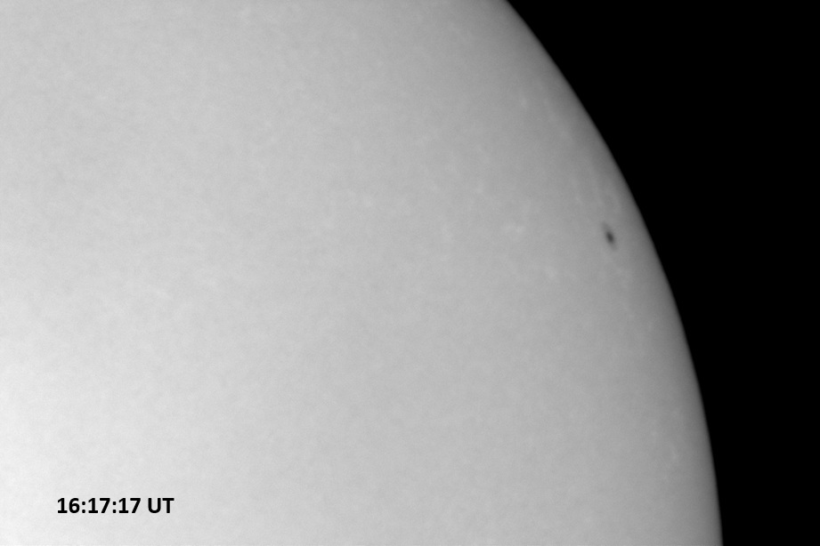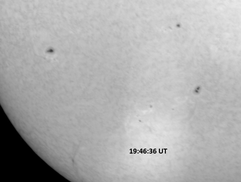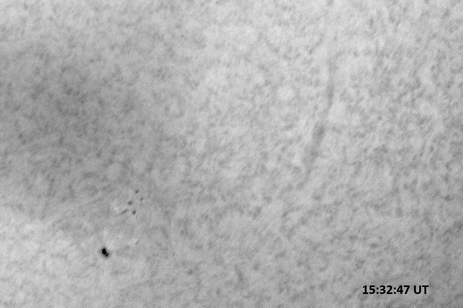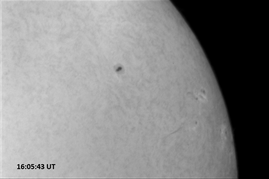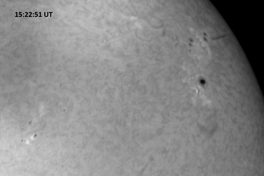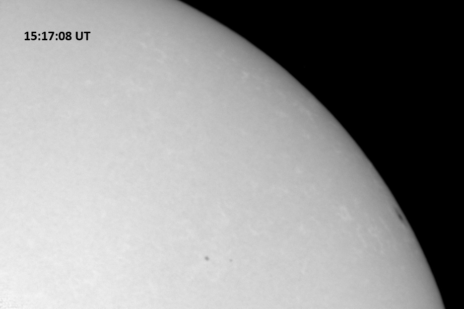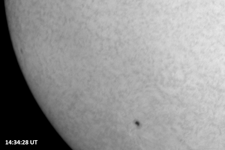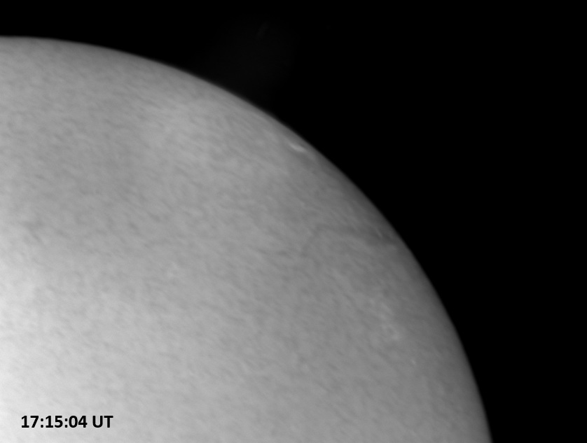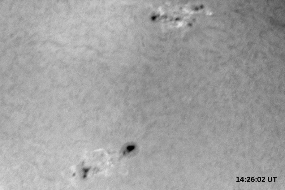 Weather was cloudy today but the clouds thinned enough to allow the Sun to shine through fairly strongly. This was enough for a complete set of continuum images, although they were made through cirrostratus clouds of varying thickness. H-alpha imaging was attempted, unsuccessfully, due to even the presence of thin clouds greatly reducing the contrast.