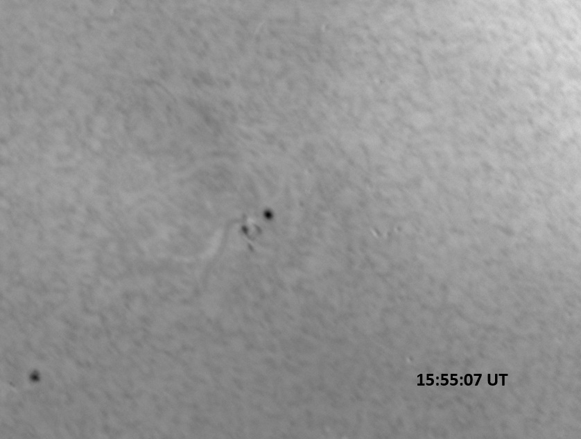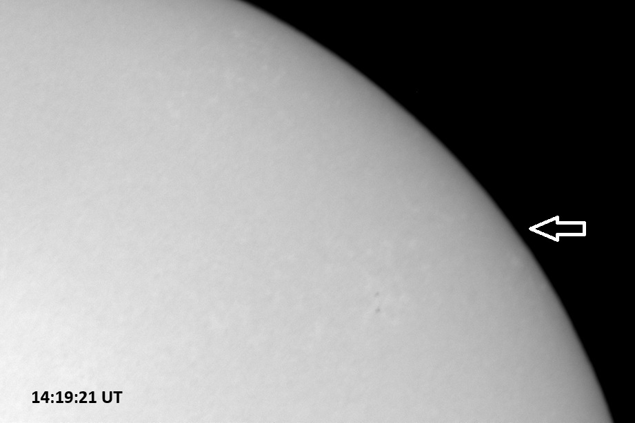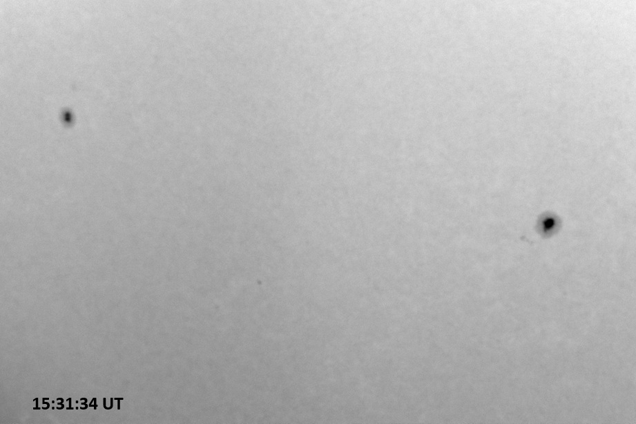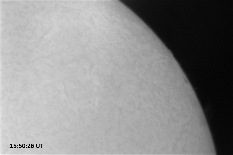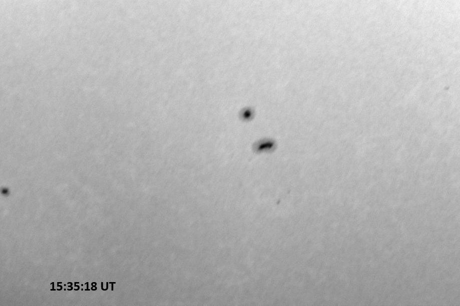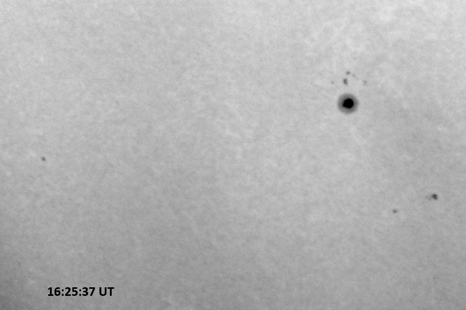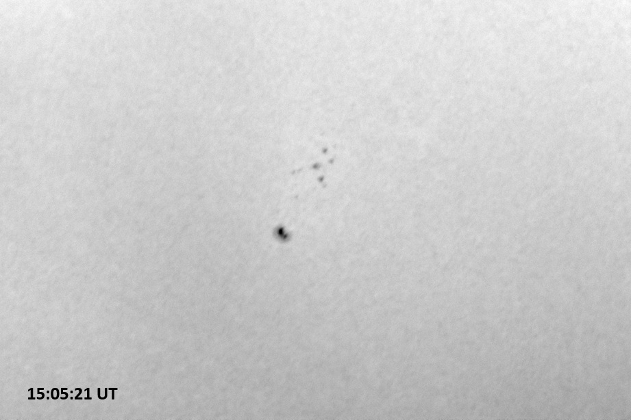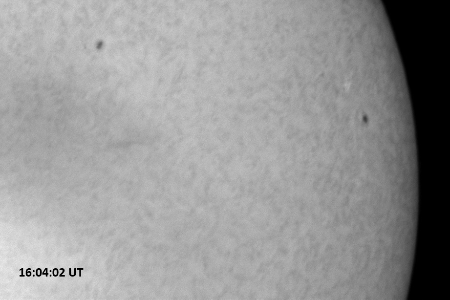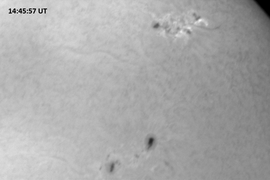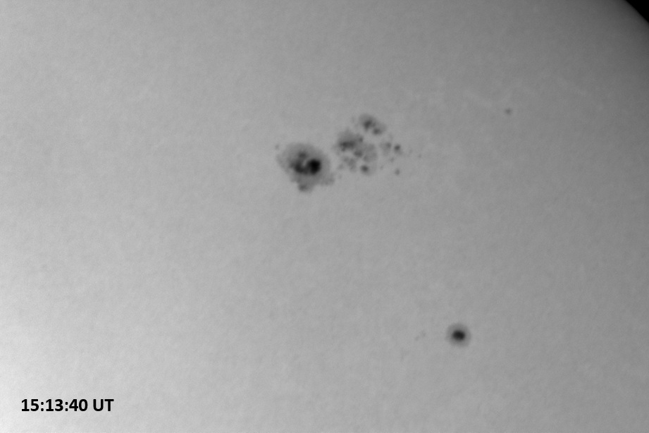 Weather was cloudy today but the clouds thinned enough to allow the Sun to shine through fairly strongly. This was enough for a complete set of continuum images, although they were made through cirrostratus clouds of varying thickness. H-alpha imaging was attempted, unsuccessfully, due to even the presence of thin clouds greatly reducing the contrast.