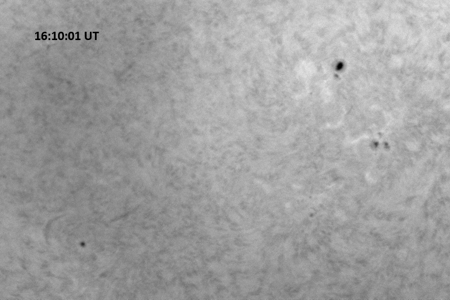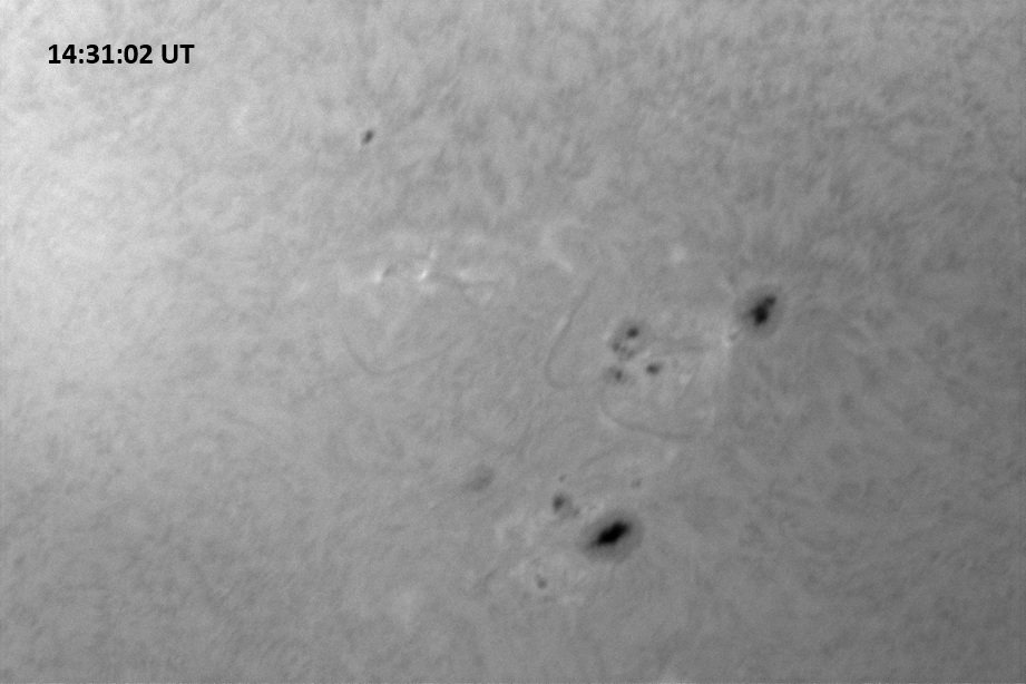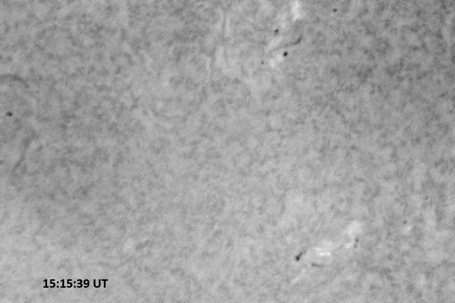 Each image covers 13.8’x18.0′ on the sky. The first is a red continuum image of 0.25 second exposure, the rest are H-alpha line center images, each 0.5 second exposure. Celestial north is up, west is right in each image.