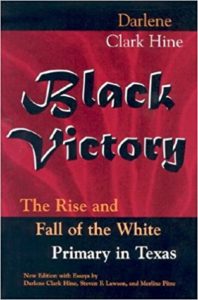 Published scholarship on black history in Texas is growing and we’d like to share with you some suggested readings, both current and past, from some of the preeminent history scholars in Texas and beyond. We invite you to take a look at our bookshelf page — including a featured selection — and check back as the list grows. A different selection will be featured each week. We welcome suggestions and reviews. This week, we offer, “Black Victory, The Rise and Fall of the White Primary in Texas,” by Darlene Clark Hine.