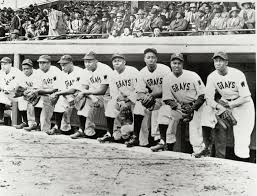 The 1946 Homestead Grays stand at their dugout at Griffith Stadium in Washington. (Negro Leagues Baseball Museum)